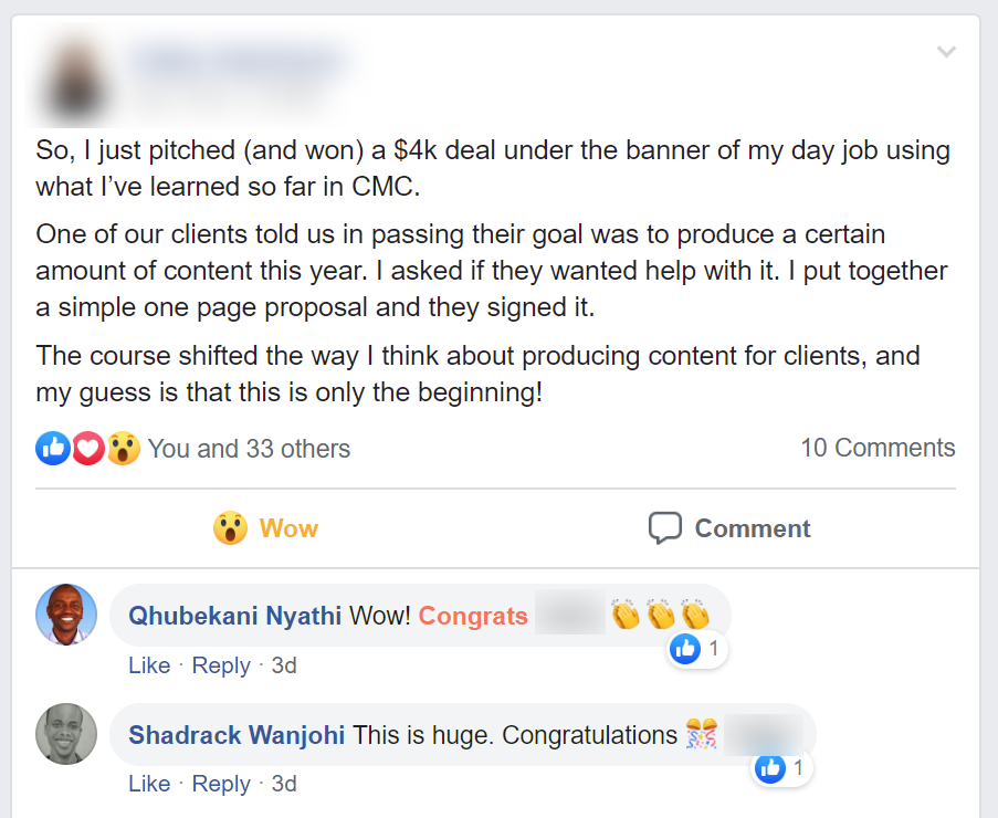 Not only have I made an excellent living from my writing, but take a look at some of these notes I've received from students in our Content Marketing Certification program …